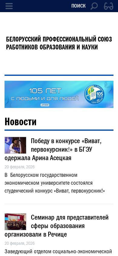 | Название / Заголовок | Главная - БЕЛОРУССКИЙ ПРОФЕССИОНАЛЬНЫЙ СОЮЗ РАБОТНИКОВ ОБРАЗОВАНИЯ И НАУКИ |