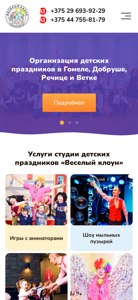 SEO-описание | Заказать аниматора в Гомеле. Звоните уже сейчас, пока вашу дату не забронировал кто-то другой. +375 29 693-92-29 и +375 44 755-81-79. |