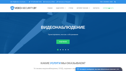 | AI-анализ | This online resource is an e-commerce website for VIDA-Techno, a company specializing in the sale and installation of security systems, specifically video surveillance in Minsk, Belarus. The website offers the best prices for video surveillance systems and provides installation services throughout Belarus, backed by a guarantee. The menu includes various types of video surveillance for residential and commercial properties, such as for private homes, apartments, offices, stores, schools, and perimeter security for large commercial properties. The website also offers installation and maintenance services for security alarms, fire alarms, and access control systems. Additionally, the website provides structured cabling services and offers various security products, including IP and AHD cameras, video recorders, and video doorphones. The contact information includes a phone number and options to write in Viber or Telegram, with business hours listed as Monday to Friday, 9:00 AM to |