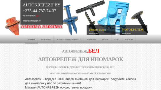 SEO-описание | автокрепеж, автокрепеж для иномарок, автокрепеж.бел, купить автокрепеж, автокрепеж в минске, оригинальный автомобильный крепёж, крепеж, купить крепеж для авто, автомобильный крепёж, autokrepezh.by, автоклипсы, автоклипсы,пистоны для иномарок, пистоны для авто, клипсы для иномарок, клипсы для авто, автомобильные клипсы, купить клипсы в минске, клипсы в минске, автокрепёж, пистоны в минске, клипсы, автокрепеж, пистоны,стеклоподъемники, детали стеклоподъемников, тросики стеклоподъемников, ролики, катушки стеклоподъемников, направляющие стеклоподъемников, устройство подъема окна, купить стеклоподъемник, узлы стеклоподъемника, ремкомплект стеклоподъемника, Болты крепления мотопластика, мотокрепеж |