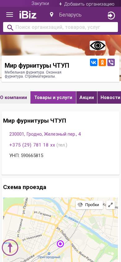 Название / Заголовок | Мир фурнитуры ЧТУП - Мебельная фурнитура. Оконная фурнитура. Стройматериалы.. 230001, Гродно, , Железный пер., 4 |