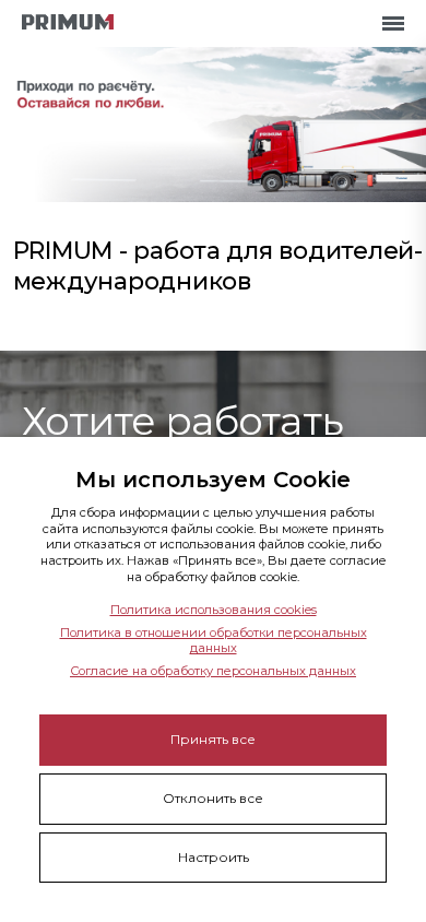 Название / Заголовок | Работа водителем-международником, автослесарем, менеджером грузоперевозок | PRIMUM |