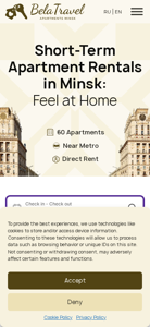SEO-описание | Choose from 60 comfortable apartments in Minsk with BelaTravel. Direct booking, no middlemen. Great locations near the metro. 24/7 online reservations. |