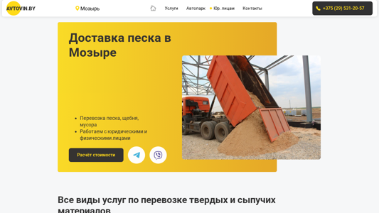 SEO-описание | Мы предлагаем качественную доставку песка, щебня 🚚 в Мозыре. Приемлемые цены. Звоните для заказа по услуги по телефону: ☎️ +375 (29) 230-35-65 |