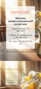 SEO-лексика | frangipani магазин профессиональной косметики адрес магазина магнит минск шаранговича пав 2111 тел 375 657-70-22 вагина унп 193100732 |