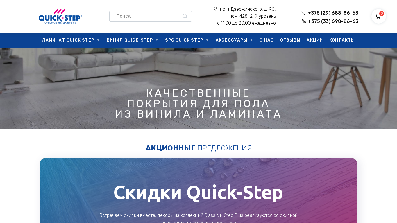SEO-описание | Официальный дилер Квик-Степ. Купить ламинат и винил Quick-Step в Минске - выгодные цены. Смотрите каталог с характеристиками, фото и отзывами покупателей. Рассрочка, доставка по Минску и РБ. |