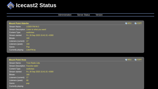 SEO-лексика | stream listeners icecast server status mount point liderfm m3u xspf name description content type audio aac started fri sep 2025 |
