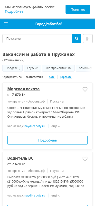 SEO-описание | Ищете работу в Пружанах? На нашем сайте Вы найдете более 120 свежих вакансий от прямых работодателей. Быстрый и удобный поиск вакансий с ГородРабот.бай |