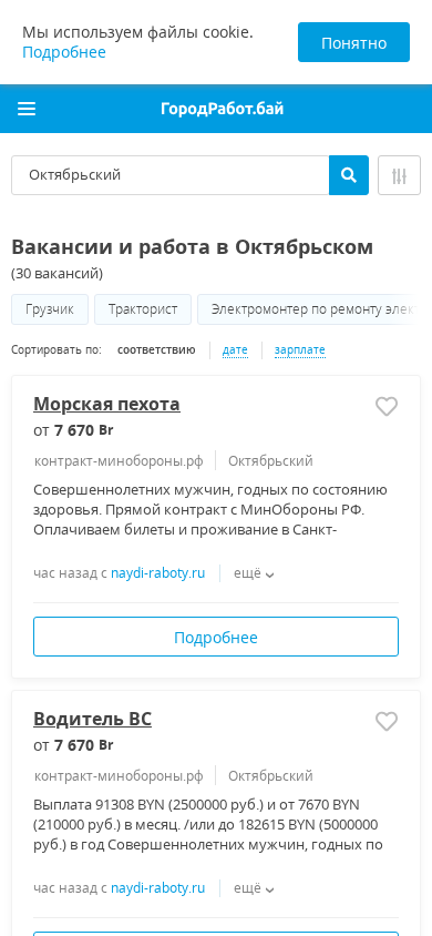 SEO-описание | Ищете работу в Октябрьском (Минская область)? На нашем сайте Вы найдете более 30 свежих вакансий от прямых работодателей. Быстрый и удобный поиск вакансий с ГородРабот.бай |
