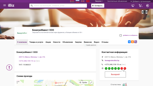 Название / Заголовок | БонагроИнвест ООО - Закупаем на постоянной основе зерно фуражное, в больших объемах от 30 т.. 220113, Минск, , Мележа, 1, оф. 316 |