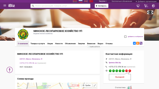 Название / Заголовок | МИНСКОЕ ЛЕСОПАРКОВОЕ ХОЗЯЙСТВО УП - Ведение лесного хозяйства.. 220101, Минск, , Малинина, 41 |