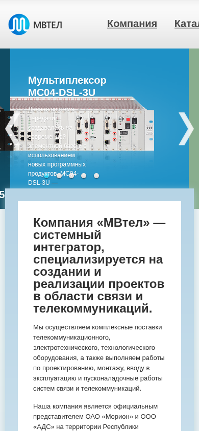 Название / Заголовок | Компания «МВтел» — системный интегратор, специализируется на создании и реализации проектов в области связи и телекоммуникаций |