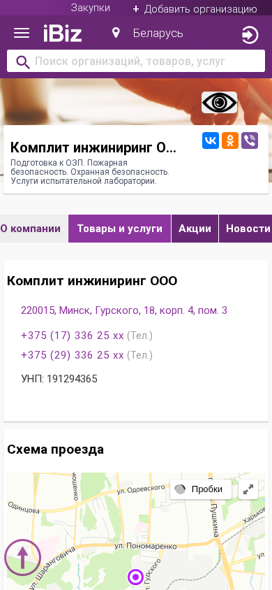 SEO-описание | Комплит инжиниринг ООО - Подготовка к ОЗП. Пожарная безопасность. Охранная безопасность. Услуги испытательной лаборатории.. Схема проезда, контактные телефоны, адрес компании Комплит инжиниринг ООО. 220015, Минск, , Гурского, 18, корп. 4, пом. 3 |