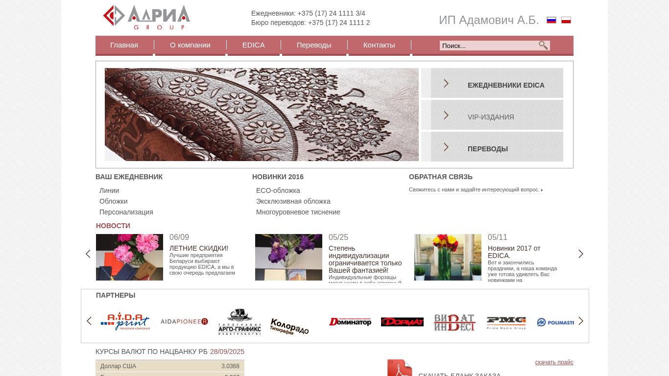 SEO-описание | Изготовление ежедневников на заказ. EDICA - крупнейший польский производитель ежедневников. 27 лет на рынке. Офис в Минске: +375 (17) 24 1111 3/4 |