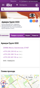 Название / Заголовок | Арвиум Групп ООО - Бухгалтерский учет. Кадровое делопроизводство. Регистрация юридических лиц. Восстановление бухгалтерского учета.. 220088, Минск, , Смоленская, 27/407 |