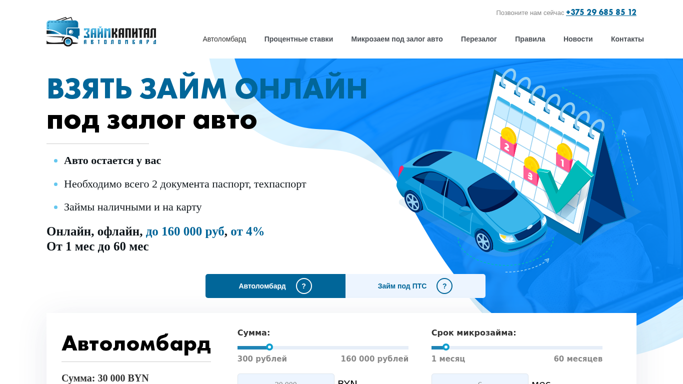 SEO-описание | Автоломбард "ЗаймКапитал" в Минске – выгодные займы под залог авто в течение 30 минут. Низкие ставки по кредиту: от 4% за 30 дней. |