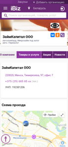 Название / Заголовок | ЗаймКапитал ООО - Автоломбард. Микрозайм под залог авто. Перезалог.. 220020, Минск, , Тимирязева, 97, офис 7 |