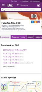 Название / Заголовок | ГолдКовАгро ООО - Продажа и обслуживание молочно-лабораторного оборудования. Анализаторы молока. Анализаторы вискозиметрические. Товары для КРС.. 220024, Минск, , Стебенева, 16/3 |