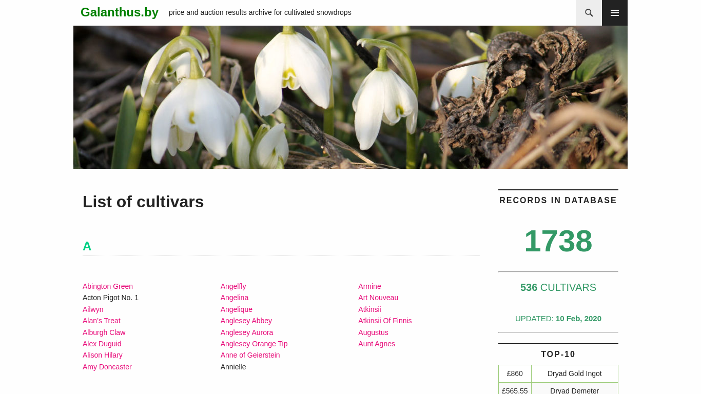 SEO-описание | price and auction results archive for cultivated snowdrops |