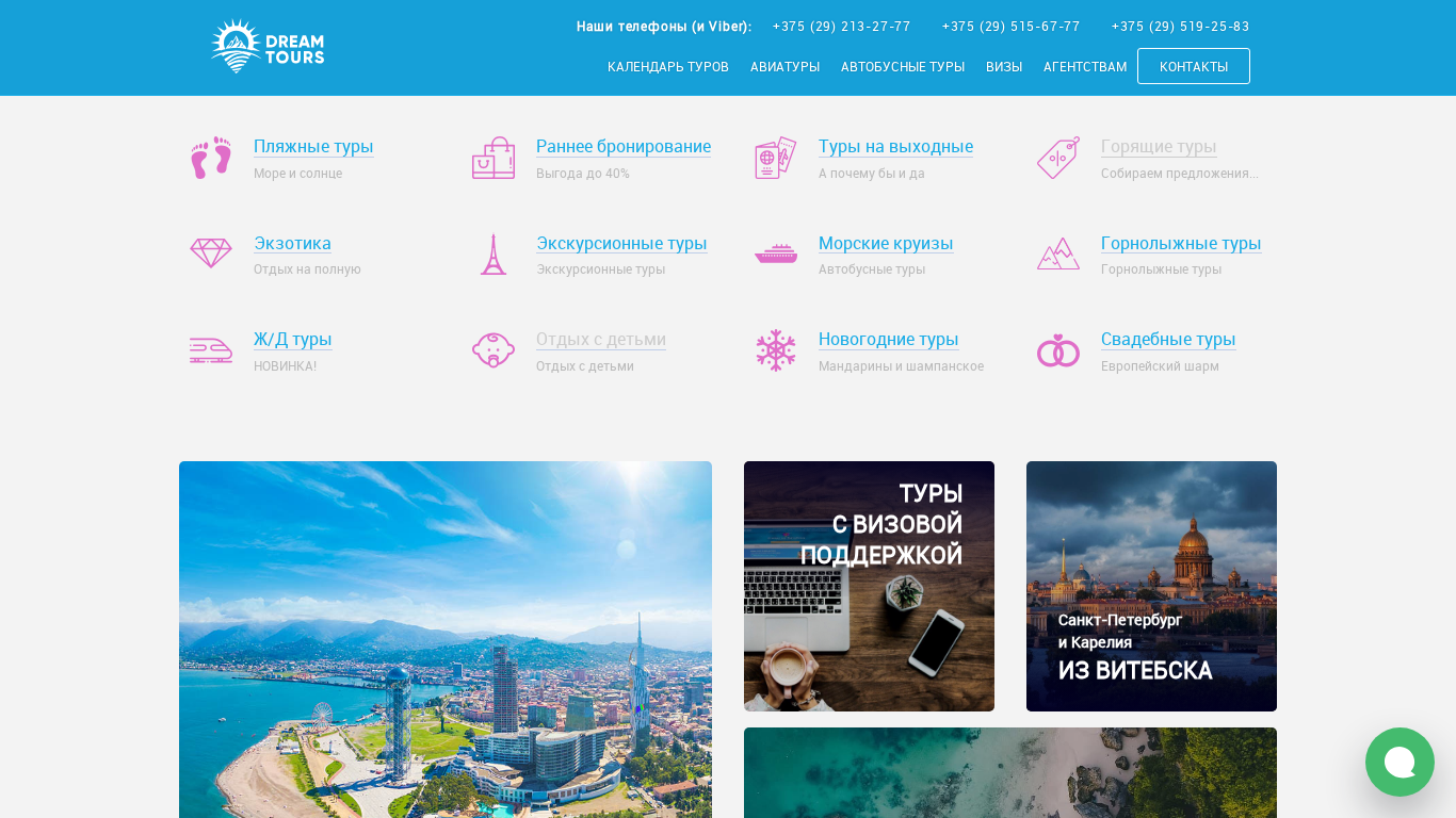 SEO-описание | Туристическое агентство DREAM TOURS - самая большая база туров с выездом из Витебска. Горящие туры из Витебска, Москвы и Киева по самым привлекательным ценам. |