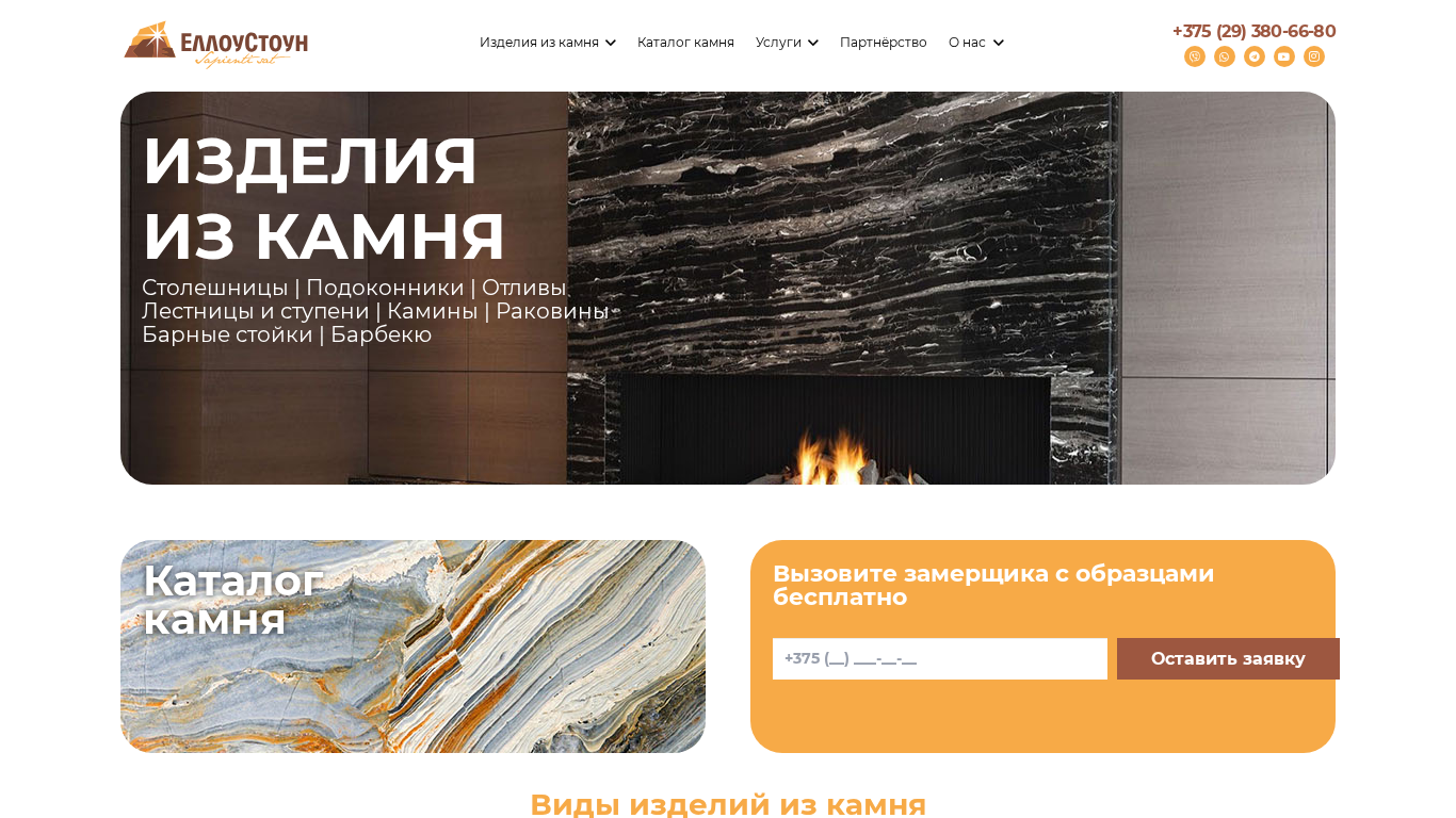 SEO-описаниеКаменная компания ЕллоуСтоун занимается изготовление, поставкой, монтажом изделий из натурального и искусственного камня: лестницы, камины, столешницы, подоконники, барбекю, раковины. Работаем по Гомелю и Гомельской области. Звоните!