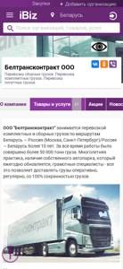 SEO-описание | Белтрансконтракт ООО - Перевозка сборных грузов. Перевозка комплектных грузов. Перевозка попутных грузов.. Схема проезда, контактные телефоны, адрес компании Белтрансконтракт ООО. 222518, Борисов, , Батурина, 94-116 |