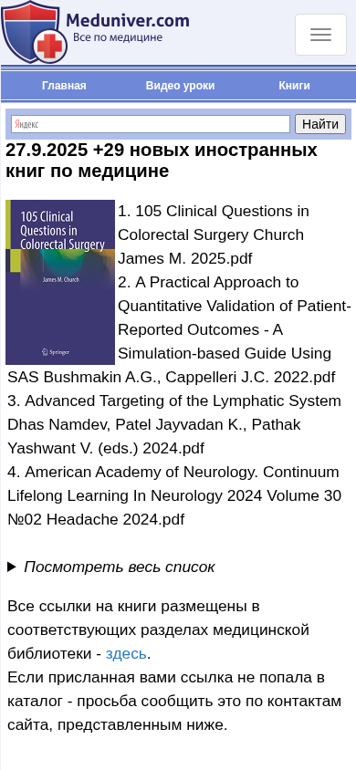 SEO-описаниеНа сайте вы найдете любую информацию как по фундаментальной, так и клинической медицине. В разделах представлена большая подборка статей, книг, учебных видео по медицине.