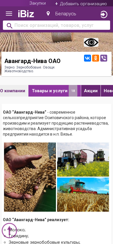 Название / Заголовок | Авангард-Нива ОАО - Зерно. Зернобобовые. Овощи. Животноводство. . 213711, , Вязье д., Центральная, 20 |