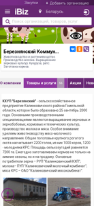 Название / Заголовок | Березнянский Коммунальное хозяйственное унитарное предприятие - Животноводство и растениеводство. Производство молока. Выращивание зерновых культур. Кукуруза, рапс. Заготовка кормов.. 247741, , Крюковичи аг., Ленина, 10 |