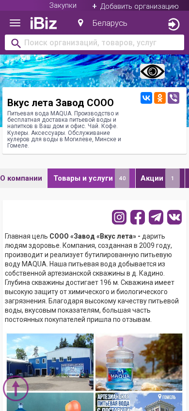 Название / Заголовок | Вкус лета Завод СООО - Питьевая вода MAQUA. Производство и бесплатная доставка питьевой воды и напитков в Ваш дом и офис. Чай. Кофе. Кулеры. Аксессуары. Обслуживание кулеров для воды в Могилеве, Минске и Гомеле.. 213112, , Кадино аг. |