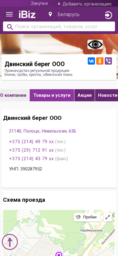 SEO-описание | Двинский берег ООО - Производство ритуальной продукции. Венки, гробы, кресты, обивочная ткань.. Схема проезда, контактные телефоны, адрес компании Двинский берег ООО. 21140, Полоцк, , Невельская, 63Б |