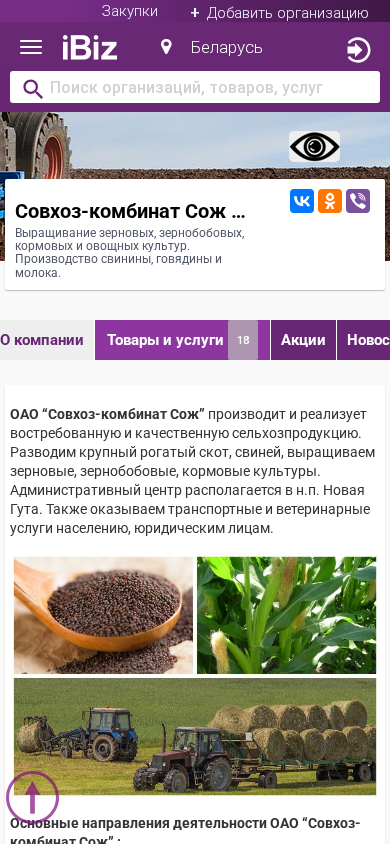Название / Заголовок | Совхоз-комбинат Сож ОАО - Выращивание зерновых, зернобобовых, кормовых и овощных культур. Производство свинины, говядины и молока.. 247019, , Новая Гута аг. |