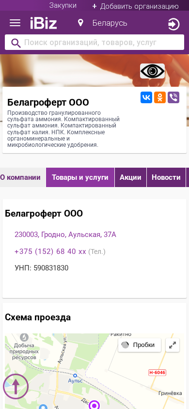 Название / Заголовок | Белагроферт ООО - Производство гранулированного сульфата аммония. Компактированный сульфат аммония. Компактированный сульфат калия. НПК. Комплексные органоминеральные и микробиологические удобрения.. 230003, Гродно, , Аульская, 37А |