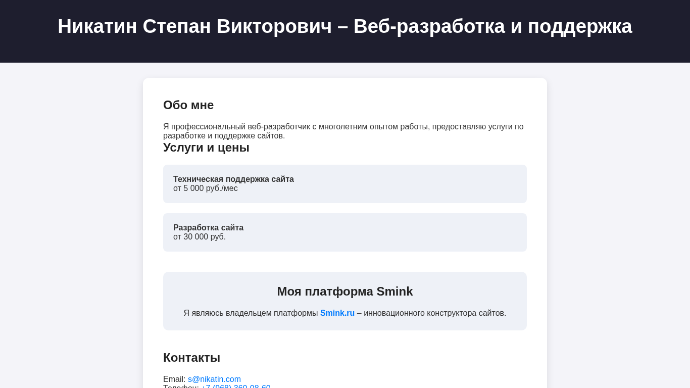 Название / Заголовок | Услуги веб-разработки – Никатин Степан Викторович |