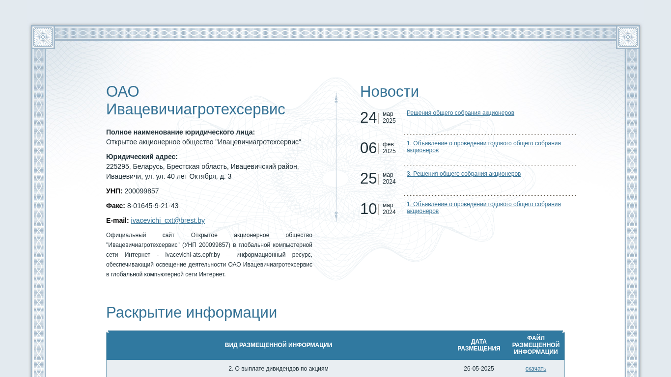 SEO-лексикаскачать общего собрания акционеров формировании реестра владельцев ценных бумаг проведении объявление годовой отчет аудиторское заключение решения 2024 2023 2022 ивацевичиагротехсервис