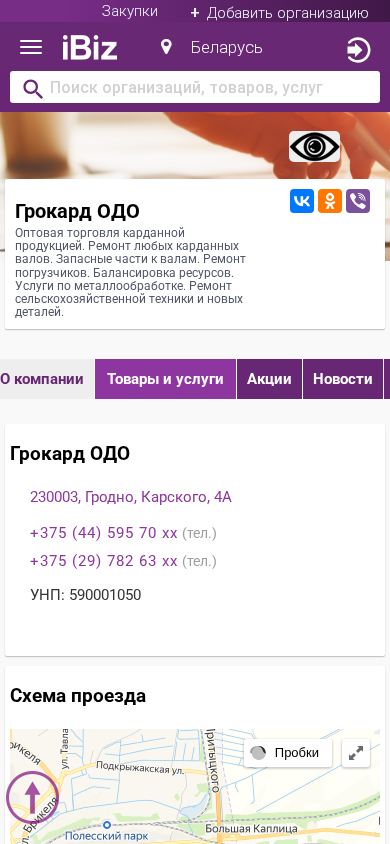 Название / ЗаголовокГрокард ОДО - Оптовая торговля карданной продукцией. Ремонт любых карданных валов. Запасные части к валам. Ремонт погрузчиков. Балансировка ресурсов. Услуги по металлообработке. Ремонт сельскохозяйственной техники и новых деталей.. 230003, Гродно, , Карского, 4А