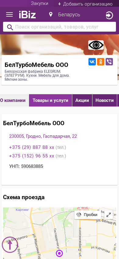 Название / Заголовок | БелТурбоМебель ООО - Белорусская фабрика ELEGRUM. (ЭЛЕГРУМ). Кухни. Мебель для дома. Мягкие зоны. . 230005, Гродно, , Гаспадарчая, 22 |