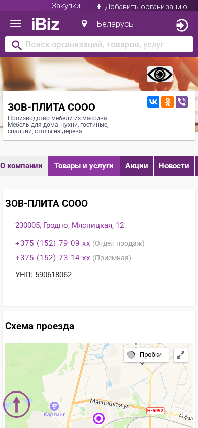 SEO-описаниеЗОВ-ПЛИТА СООО - Производство мебели из массива. Мебель для дома: кухни, гостиные, спальни, столы из дерева.. Схема проезда, контактные телефоны, адрес компании ЗОВ-ПЛИТА СООО. 230005, Гродно, , Мясницкая, 12