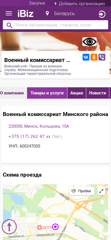 Название / ЗаголовокВоенный комиссариат Минского района - Воинский учёт. Призыв на военную службу. Мобилизационная подготовка. Организация территориальной обороны.. 220090, Минск, , Кольцова, 15А