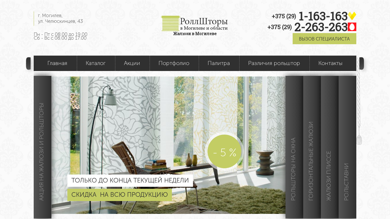 SEO-описаниеКупить жалюзи и рольшторы в Могилеве и области по низким ценам. Жалюзи на окна из европейских материалов. Бесплатный замер. Гарантия. Звоните! ☎ +375 (29) 1-163-163, +375 (29) 2-263-263