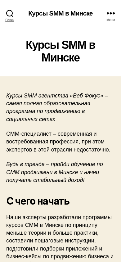 Название / Заголовок | Курсы SMM в Минске, обучение на СММ-специалиста (менеджера), продвижение с нуля, цена курсов SMM, обучающее агентство. |