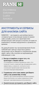 Название / Заголовок | RANKW.RU — Анализ сайта онлайн бесплатно, отзывы и оценки. Инструменты для вебмастеров и оптимизаторов для исследования и сравнения показателей сайта с его конкурентами и изучения истории их изменений. |