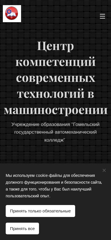 | AI-анализ | --- This website is the homepage of the Center of Competencies for Modern Technologies in Machinery Manufacturing, an educational institution in Belarus. The center was established by the order of the Education Management of the Homiel Regional Executive Committee and the Homiel State Automobile Mechanical College in 2008 and 2008 respectively. The center was later renamed to the 'Center of Competencies for Modern Technologies in Machinery Manufacturing' in 2022. Approximately 300 people are trained annually at the center. Its mission is to equip students with the skills to work on modern machinery and technologies, improve the professional competencies of teachers and workers, and analyze and implement innovative technological and material resources in the center. The center's objectives include creating conditions for students to acquire skills to work on modern equipment, improving the professional competencies of educators and workers, and analyzing and |