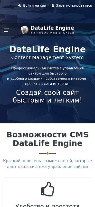 SEO-описаниеDataLife Engine (DLE) — система управления сайтом и контентом. Официальный сайт многопользовательской новостной CMS для организации СМИ. Движок для сайта.