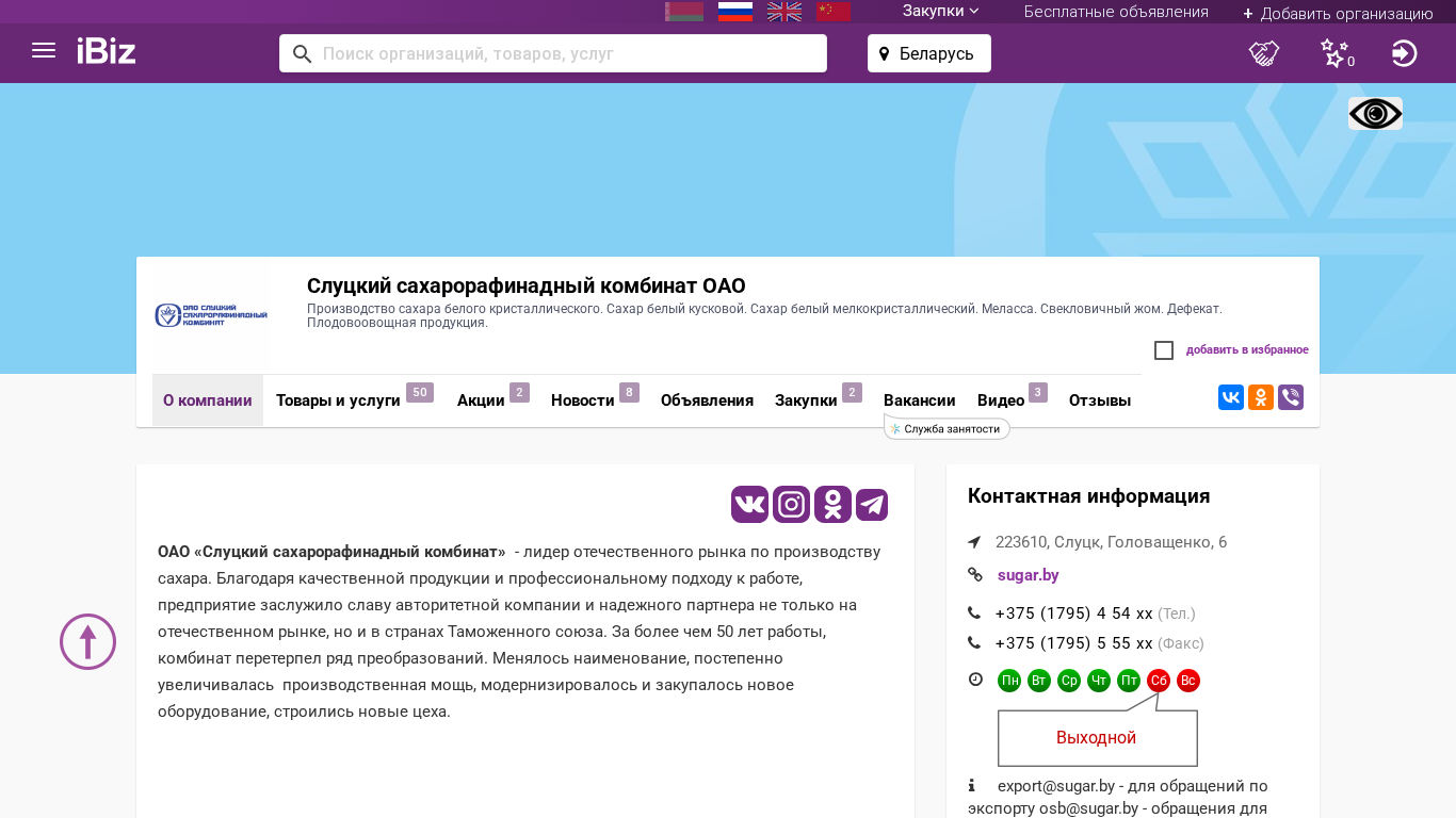 Emailexport@sugar.by, contact@sugar.by, info@ibiz.by, osb@sugar.by