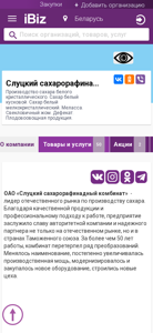 Название / ЗаголовокСлуцкий сахарорафинадный комбинат ОАО - Производство сахара белого кристаллического. Сахар белый кусковой. Сахар белый мелкокристаллический. Меласса. Свекловичный жом. Дефекат. Плодовоовощная продукция. . 223610, Слуцк, , Головащенко, 6