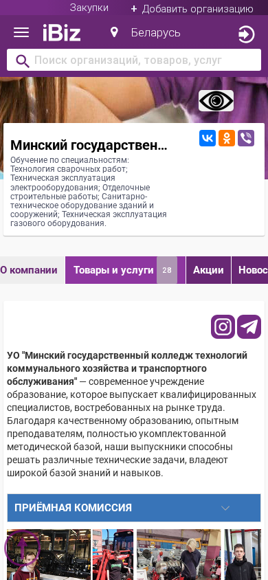 Название / Заголовок | Минский государственный колледж технологий коммунального хозяйства и транспортного обслуживания УО - Обучение по специальностям: Технология сварочных работ; Техническая эксплуатация электрооборудования; Отделочные строительные работы; Санитарно-техническое оборудование зданий и сооружений; Техническая эксплуатация газового оборудования.. 220046, Минск, , Ваупшасова, 19 |