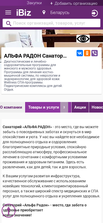 Название / ЗаголовокАЛЬФА РАДОН Санаторий - Диагностические и лечебно-оздоровительные программы для женского и мужского здоровья. Программы для лечения костно-мышечной системы, по неврологии и эндокринологии, для здоровой кожи. Wellness СПА-программы. Педиатрические комплексы для детей. Отдых.. 231461, , Даниловичский с/с, 4