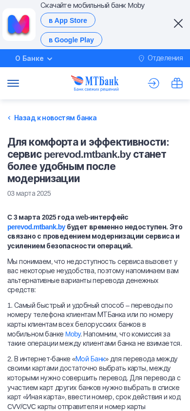 Название / Заголовок | Для комфорта и эффективности: сервис perevod.mtbank.by станет более удобным после модернизации - МТБанк |