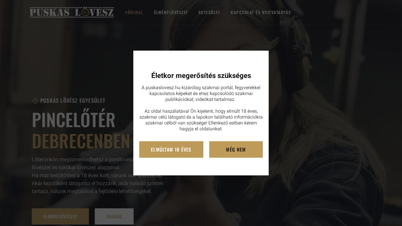 Название / Заголовок | Puskás Lövész Egyesület – pincelőtér Debrecen, élménylövészet, IPSC, Steel Challenge, éles lövészet |